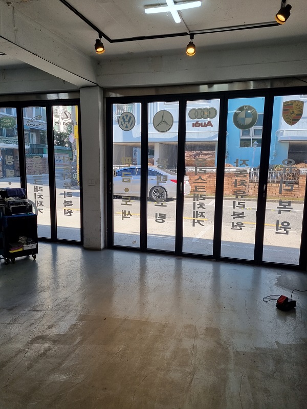 강동구 길동 자동차 유리복원 전문점 시공 현장 엘지 스탠드 냉난방기 30평형 |